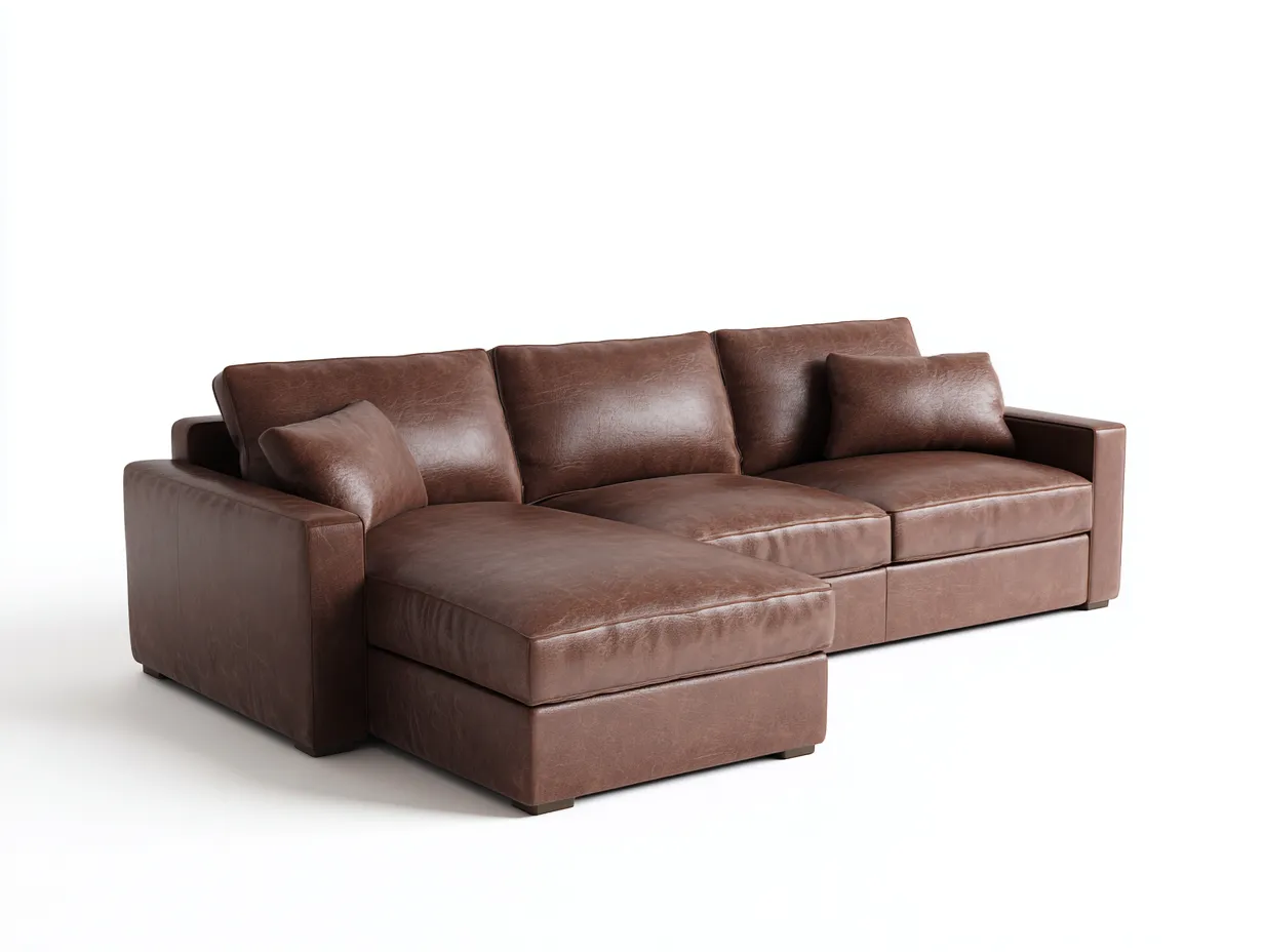 Sofás rinconeros tapizados en cuero sintético con chaise longue 260x160x85 cm - marrón - diseño moderno